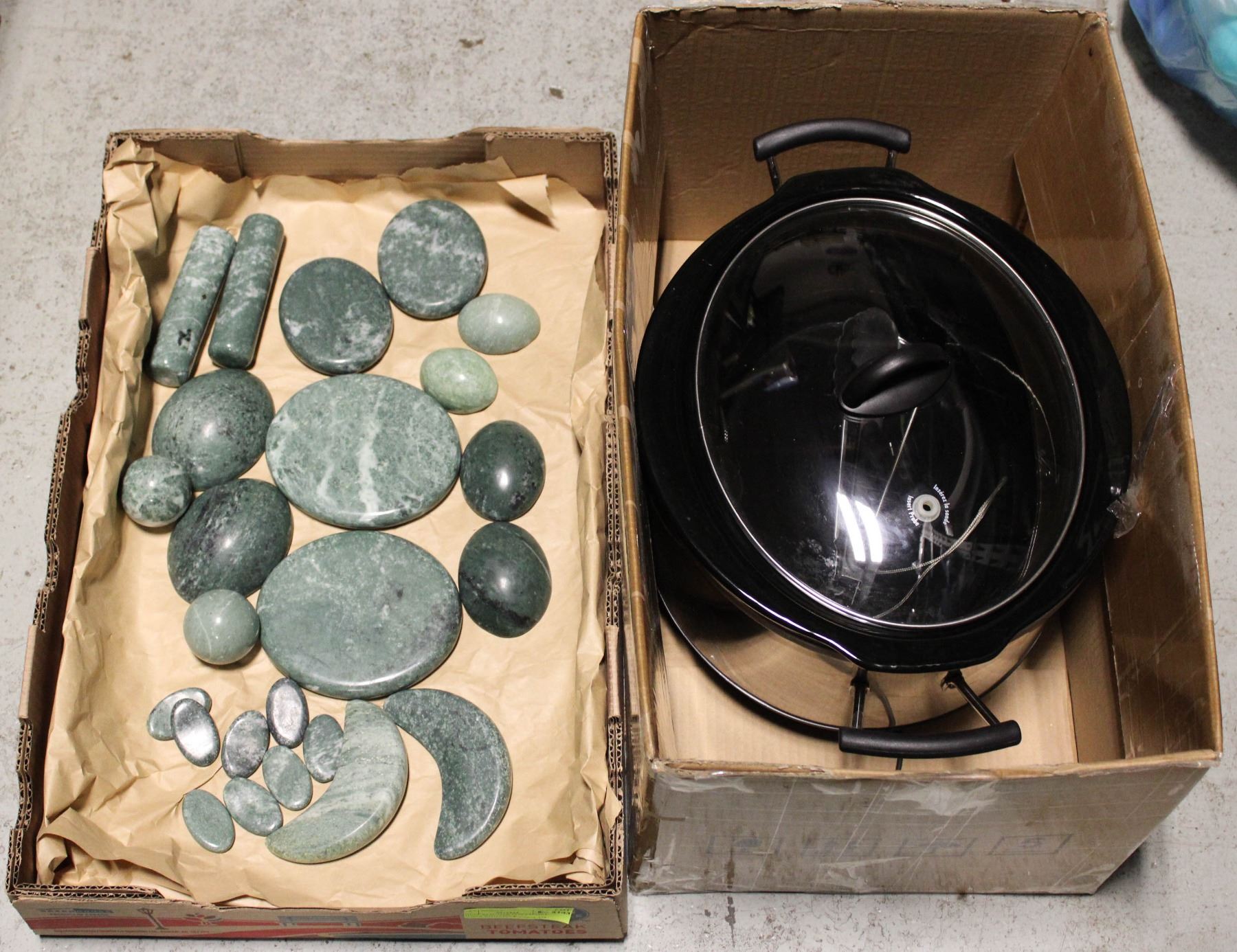 LOT OF REAL JADE 24 PCS MASSAGE STONES WITH CROCK
