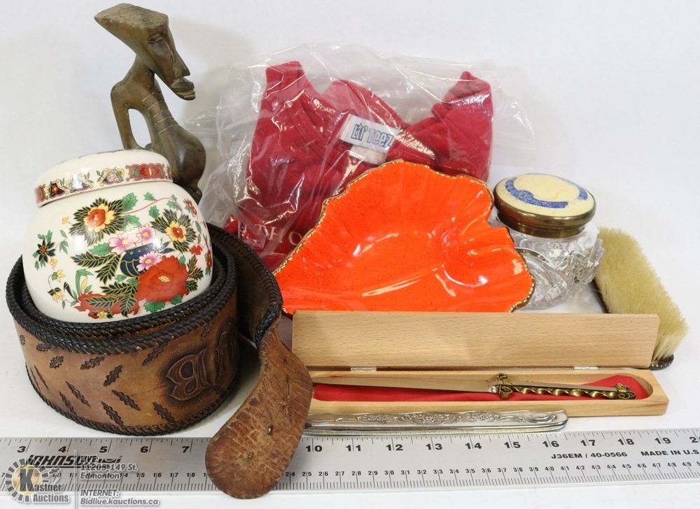 LOT OF SADLER CRYSTAL, LEATHER AND MORE