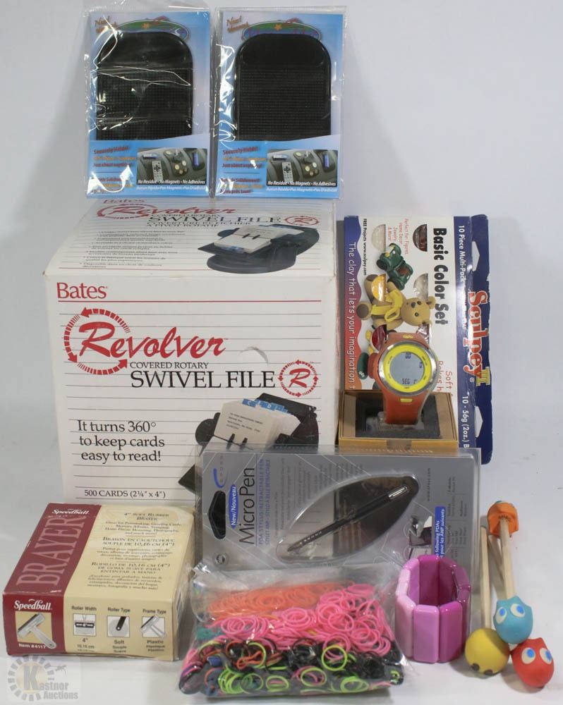 SOLEUS AND NIXON VEGA WATCHES (WORKING), PAC-MAN ERASERS, NEW BRAYER, ETC.