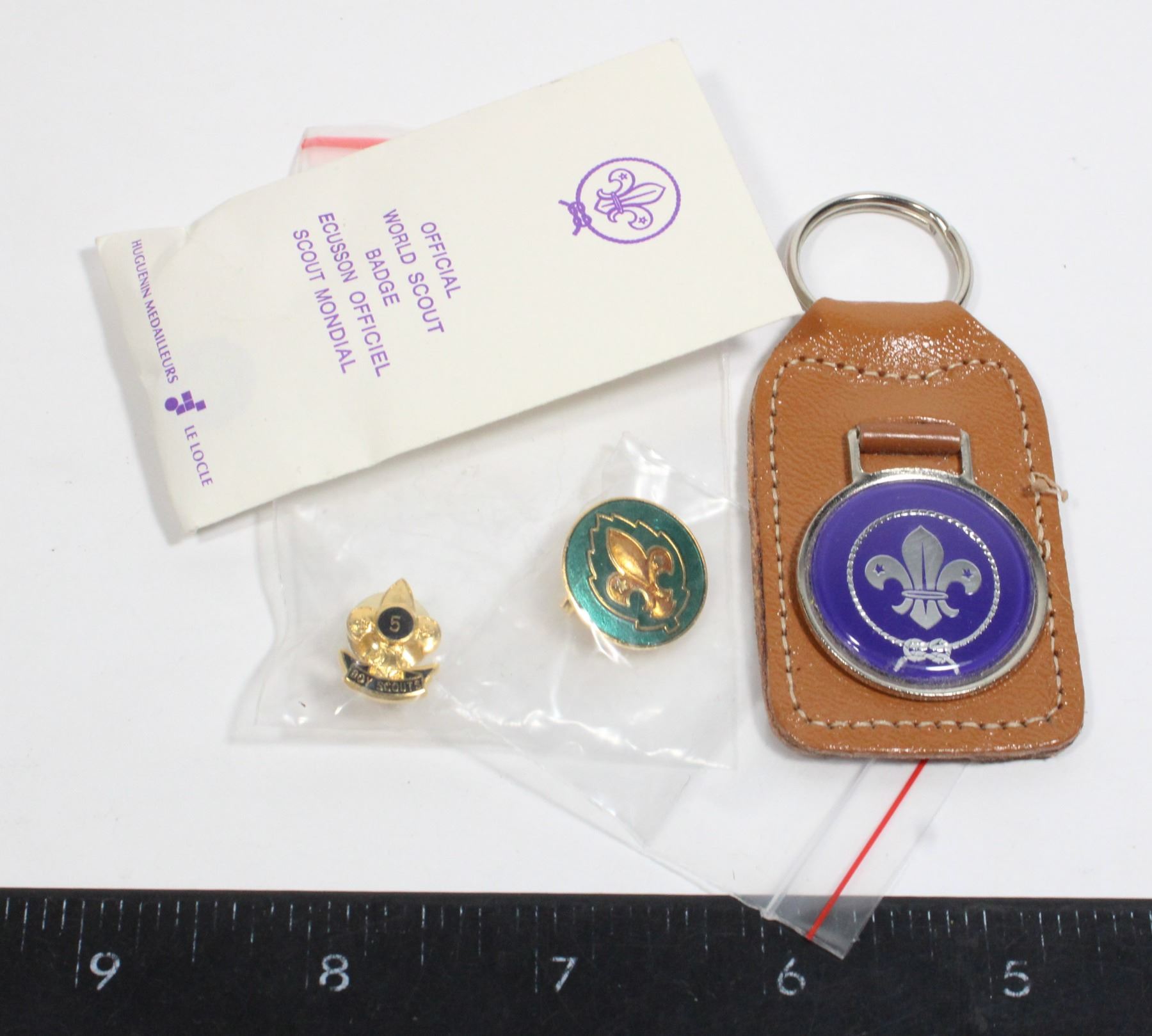 LOT OF SCOUT ITEMS SCOUT PINS, BANDGE ANE KEY RING