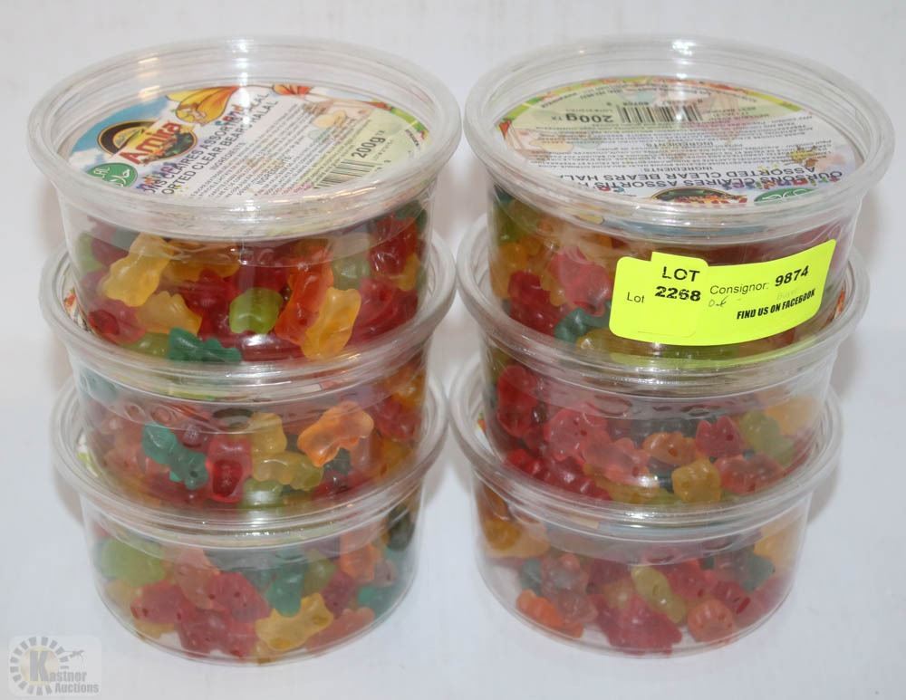 LOT OF SIX CONTAINERS OF GUMMY BEAR JELLY CANDY