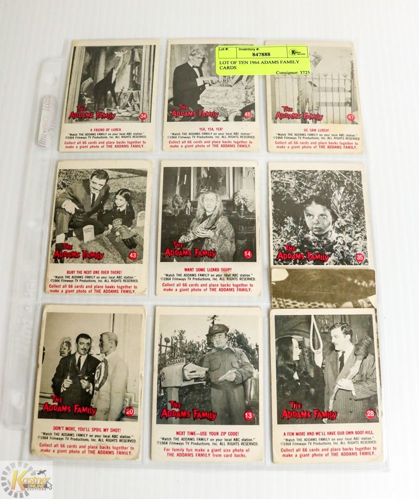 LOT OF TEN 1964 ADAMS FAMILY CARDS