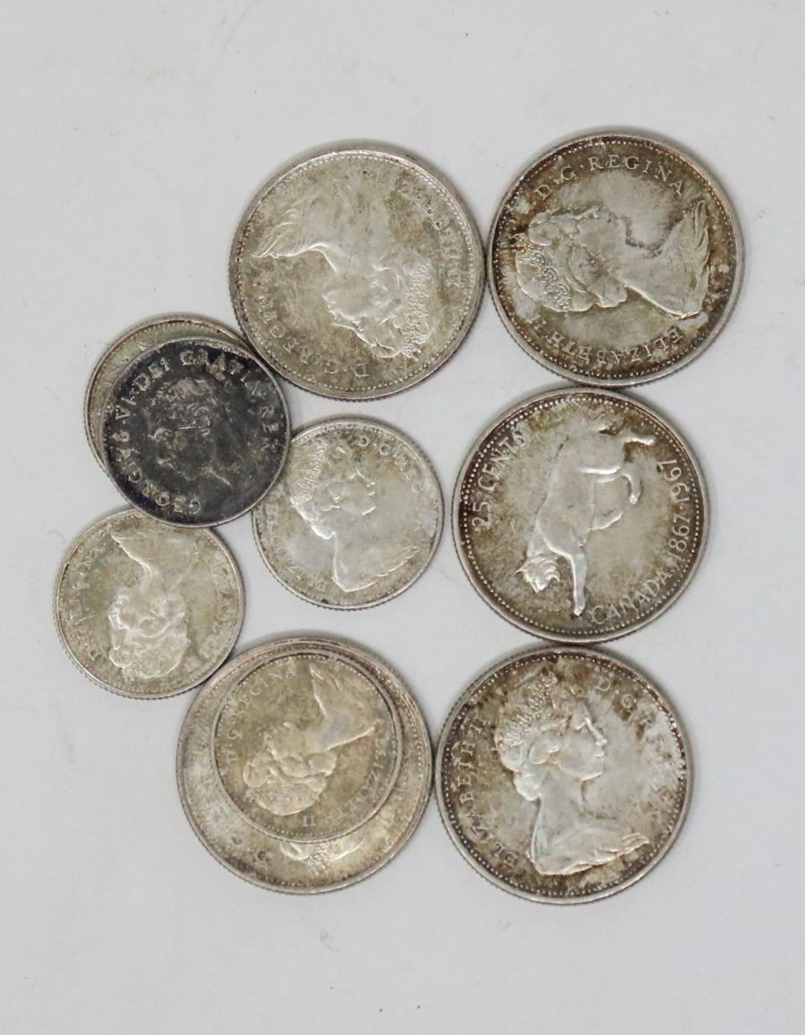 LOT OF TEN ASSORTED SILVER CANADIAN COINS