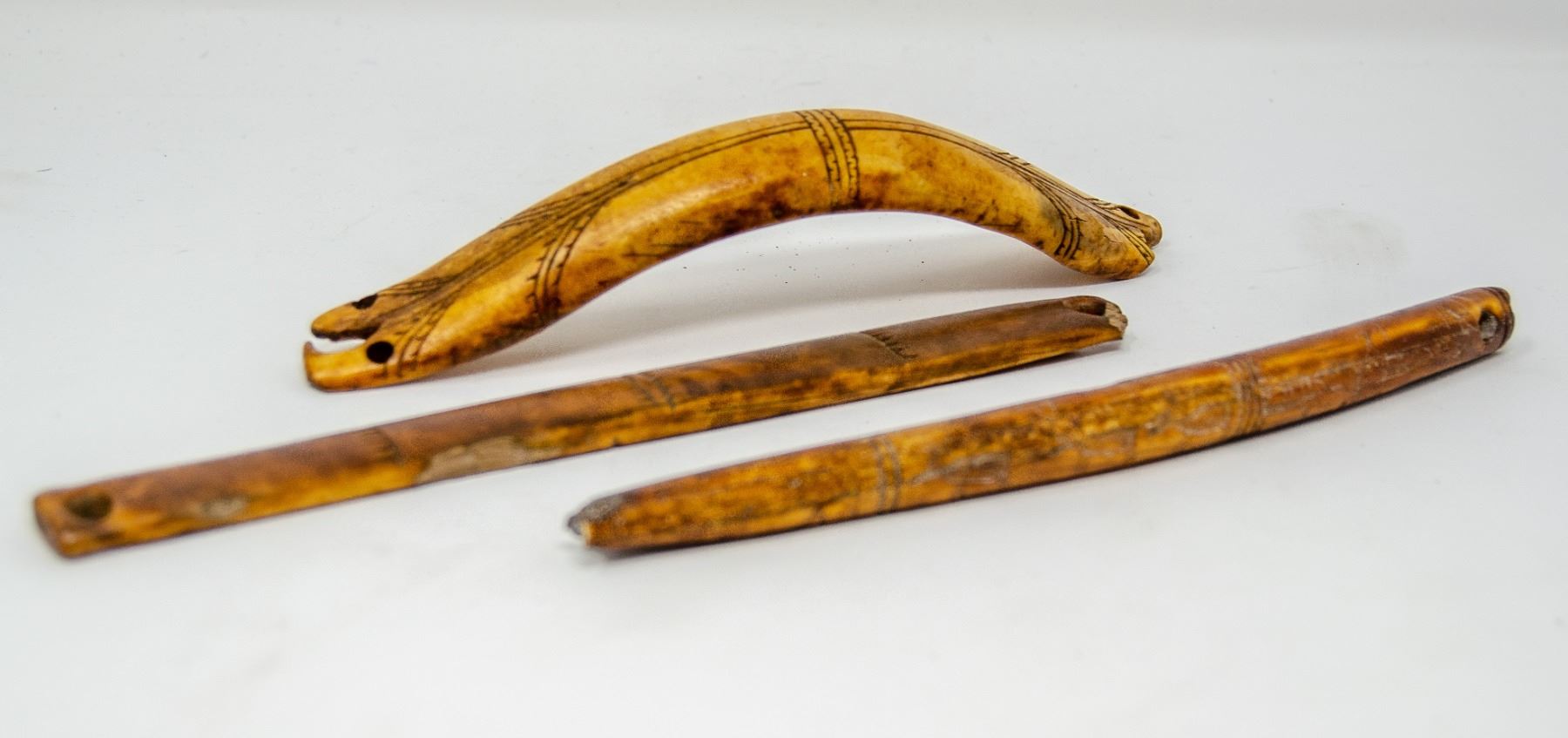 LOT OF THREE 1800S INUIT CARVED BONE ARTIFACTS