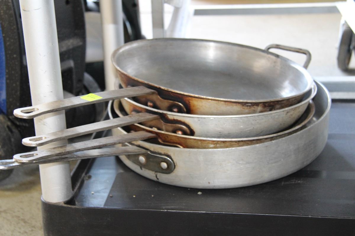 LOT OF THREE FRYING PANS & ONE SAUCE PAN