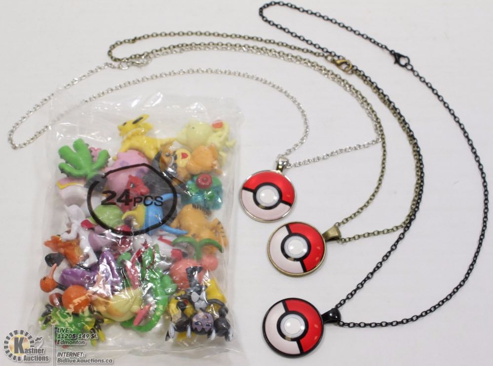 24 MINIATURE POKEMON FIGURINES. CHAINS ARE 20"