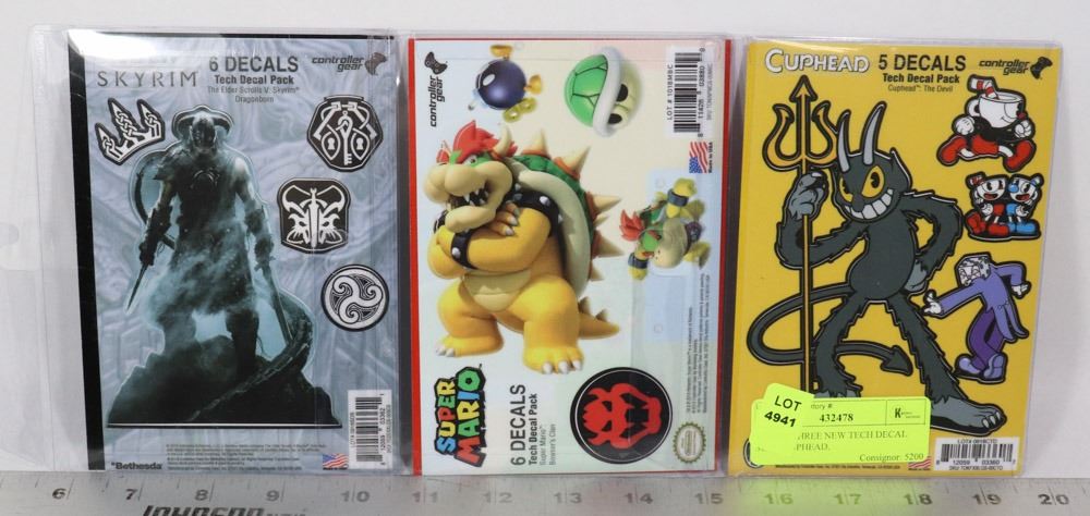 LOT OF THREE NEW TECH DECAL SETS; CUPHEAD,