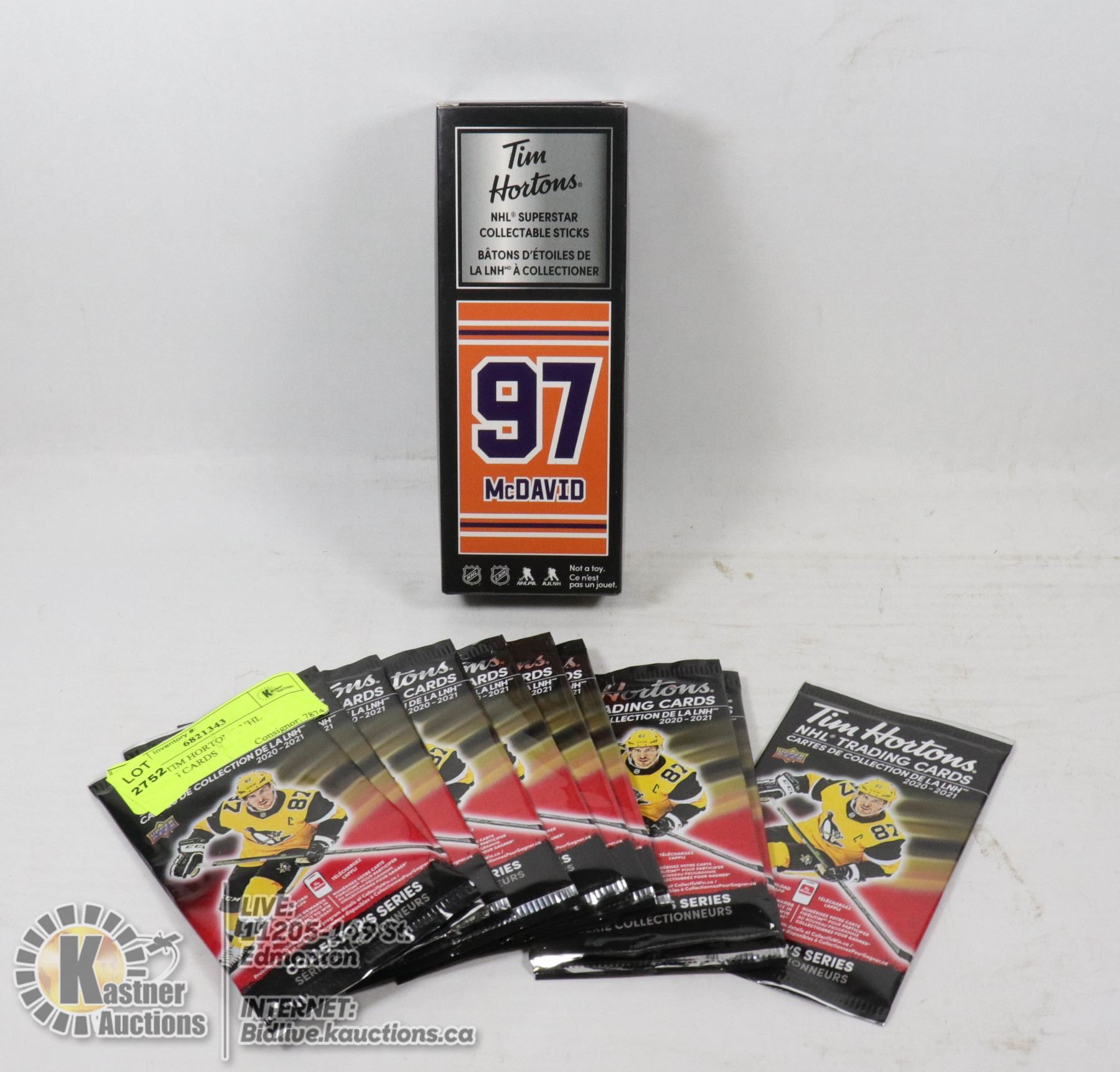10 CARDS-2020-21AND TIM HORTON'S CONNOR MCDAVID COLLECTIBLE STICK