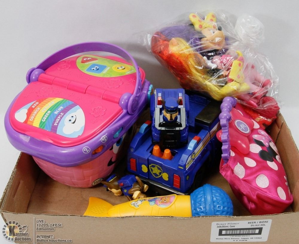 LEAP FROG PICNIC BASKET, 2 MY LITTLE PONY DOLLS, AND BUBBLE GUPPIES MICROPHONE. KIDS.