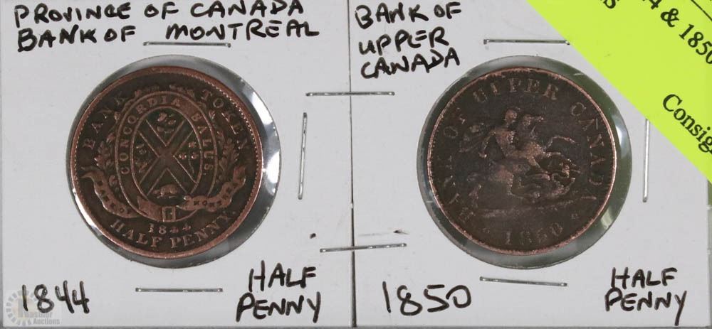 LOT OF TWO 1844 & 1850 QUEBEC HALF PENNIES