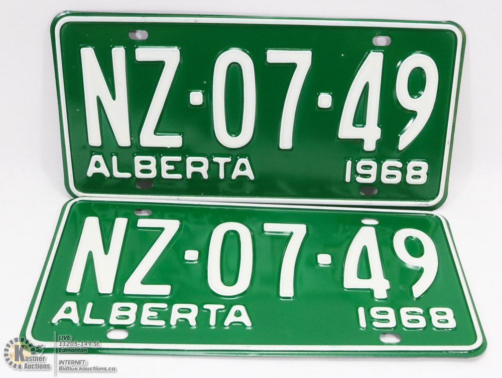 LOT OF TWO 1968 ALBERTA UNUSED LICENSE PLATES.