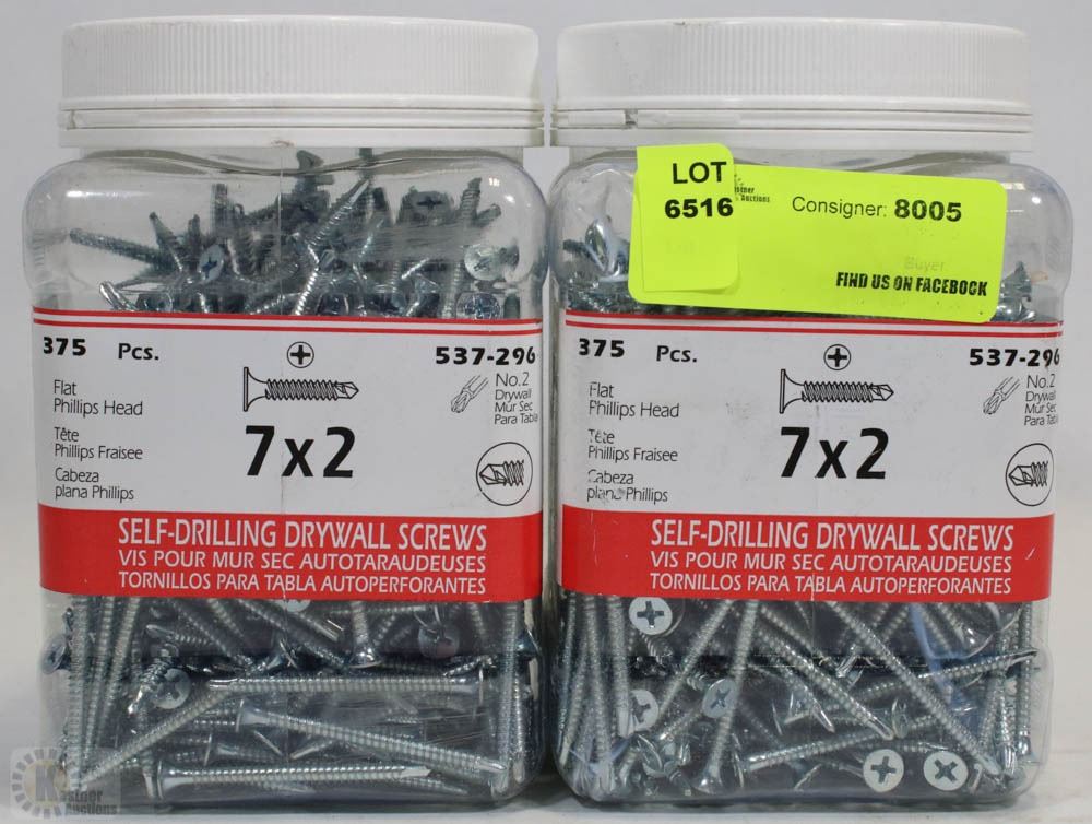 LOT OF TWO 375PC 7X2 SELF-DRILING DRYWALL SCREWS