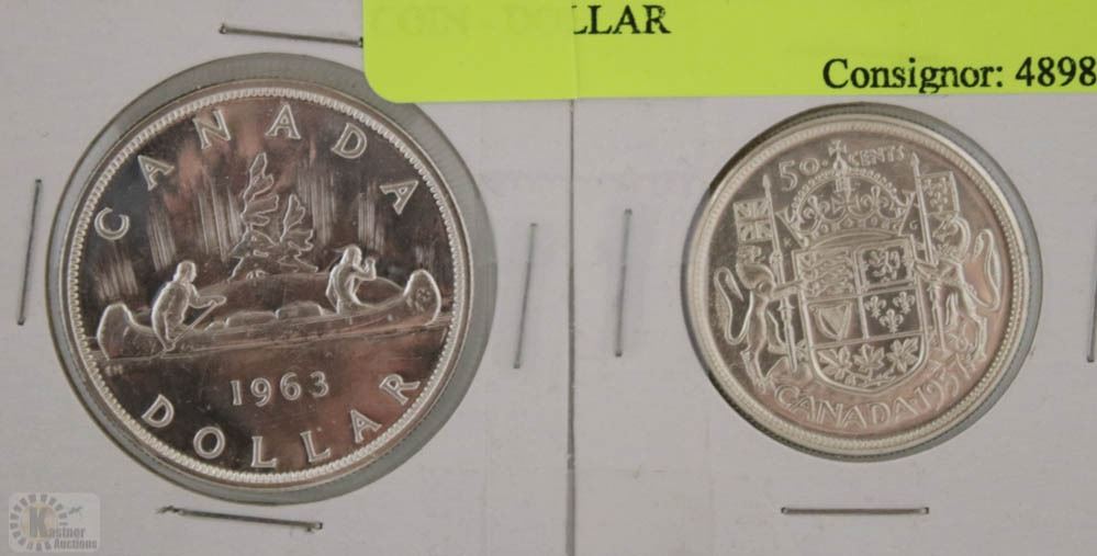 AND HALF-DOLLAR, 1963 CANADIAN DOLLAR AND 1957 CANADIAN HALF-DOLLAR