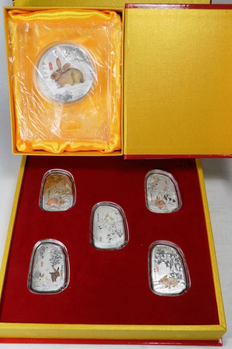 LOT OF TWO ELECTROPLATED YEAR OF THE RABBIT COIN