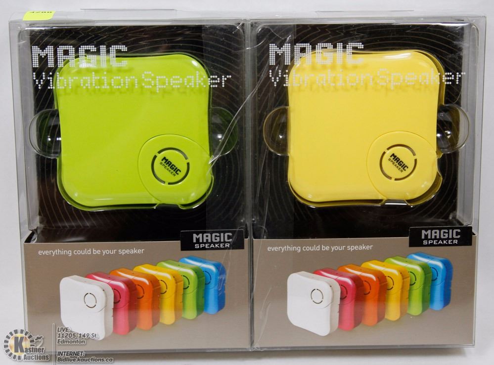 EVERYTHING COULD BE YOUR SPEAKER! EXPERIMENT WITH TURNING ANY OBJECT INTO A SPEAKER. JUST STICK YOUR VIBRATION SPEAKER PAD ONTO VIRTUALLY ANY SURFACE. WORKS WITH ANY AUDIO DEVICE WITH A 3.5MM JACK. POWERED BY 2 AA BATTERIES.