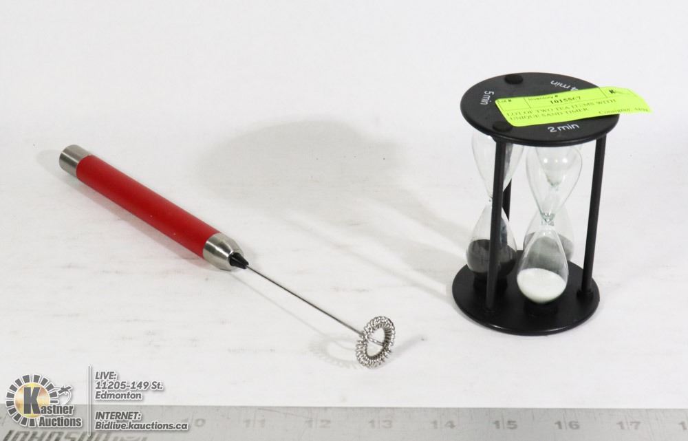 LOT COMES WITH 2, 4 AND 5 MINUTE GLASS SAND GLASS TIMER AND THINK KITCHEN FROTH MAKER/COLLECTIBLES
