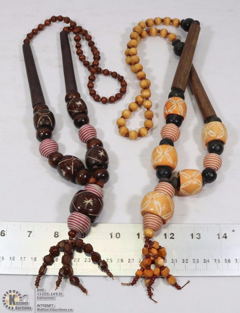 LOT OF TWO WOOD NECKLACES, YELLOW AND BROWN