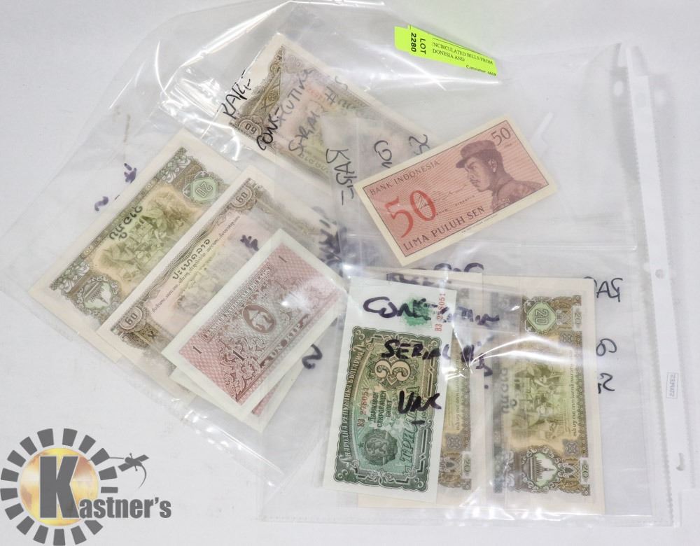 LOT OF UNCIRCULATED BILLS FROM LAOS, INDONESIA AND