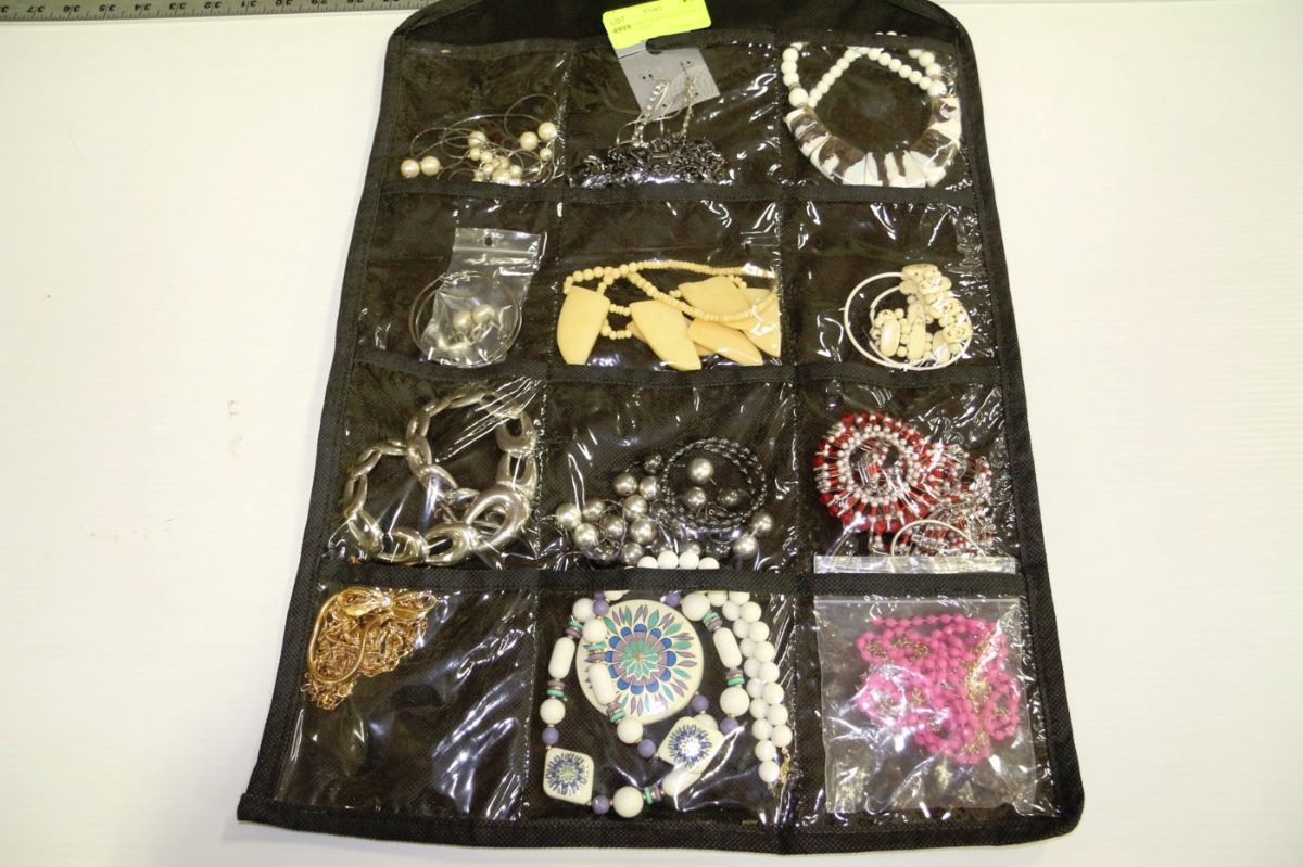 LOT OF VARIOUS JEWELLERY ITEMS W HANGING CASE