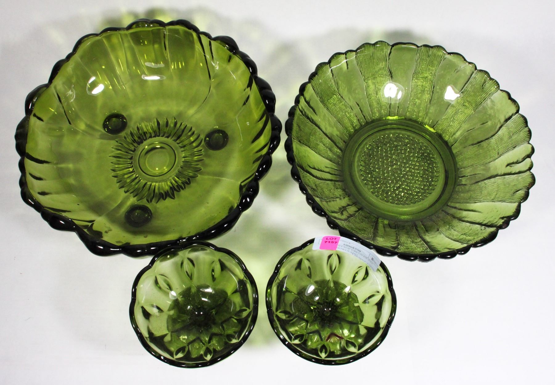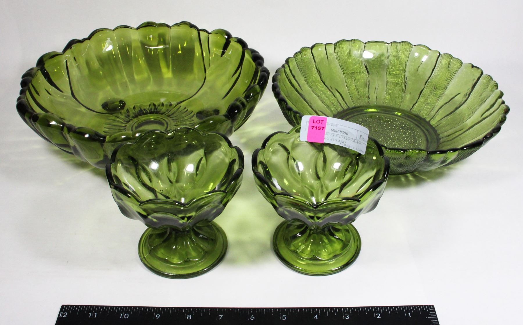 DESSERT DISHES. INCLUDES ANCHOR HOCKING COUNTRY GARDEN AVOCADO GREEN SALAD BOWL. NO CHIPS OR CRACKS ON ANY