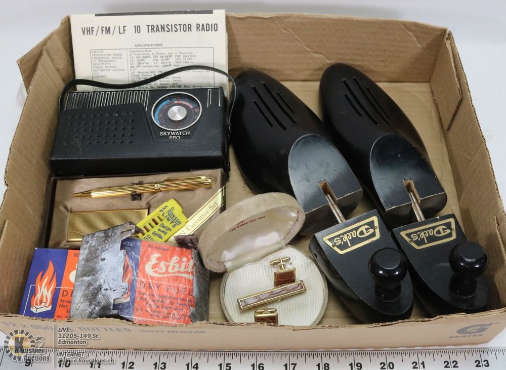 SET, GOLD PEN & LIGHTER WIN EXECUTIVE SET, CASE OF ESBIT SKYWATCH PRO RADIO.