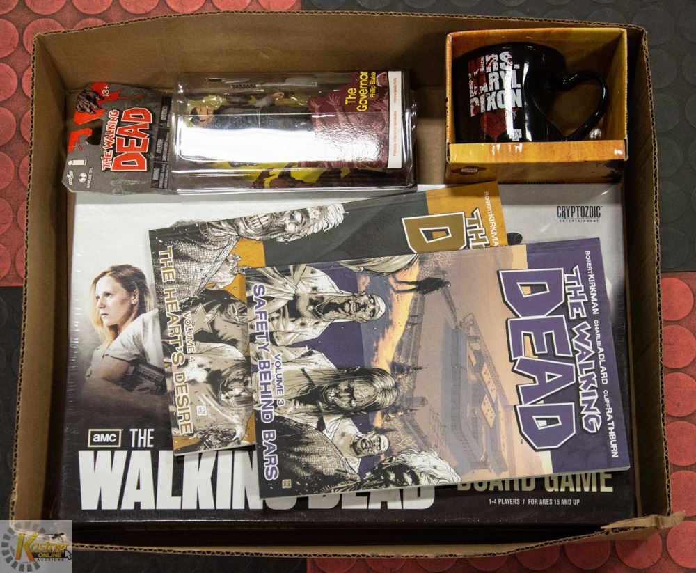 GAME, TWO GRAPHIC NOVELS, GOVERNOR FIGURE FROM GRAPHIC NOVEL AND MRS. DARYL DIXON MUG