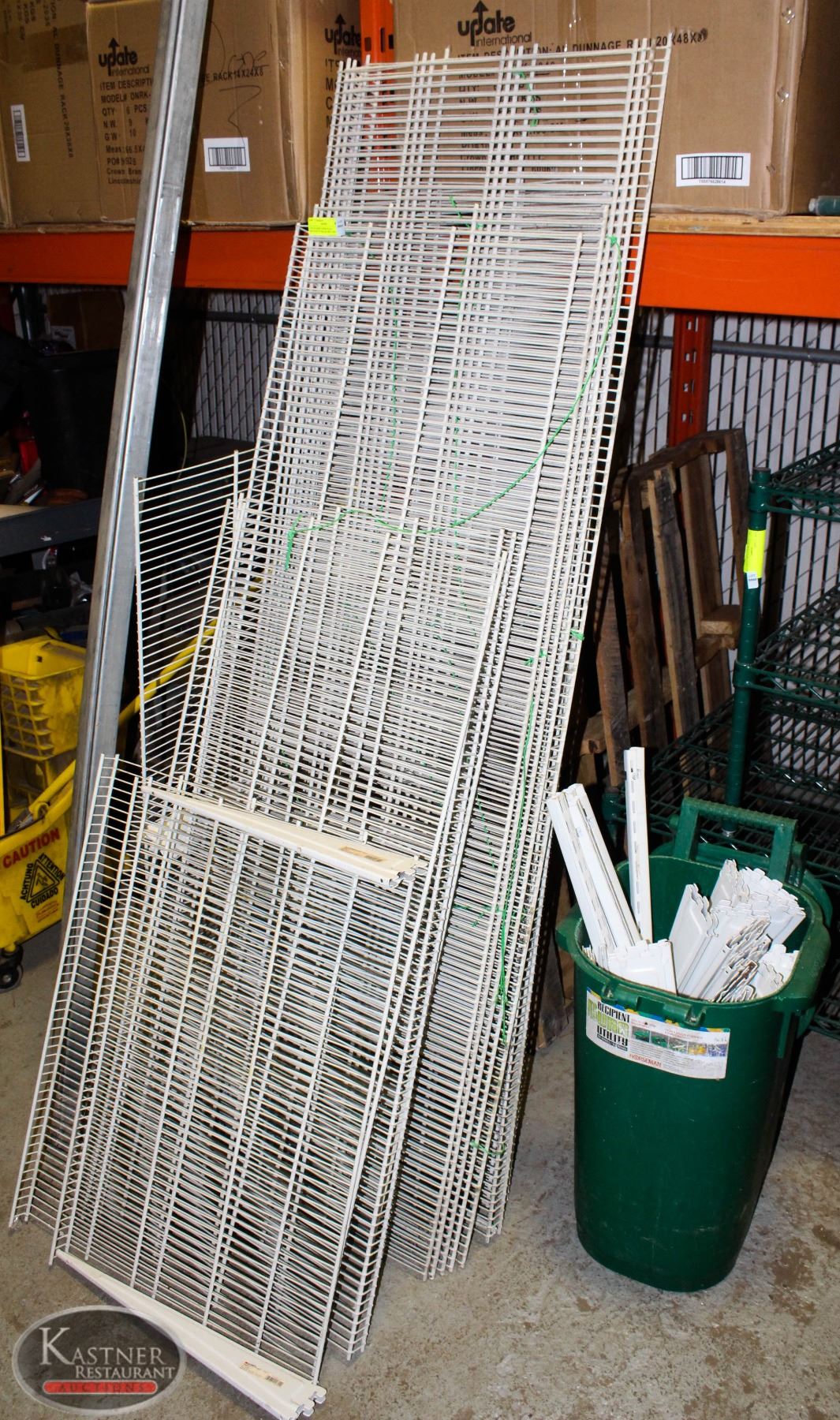 LOT OF WHITE-WIRE WALL MOUNTED STORAGE SHELVING