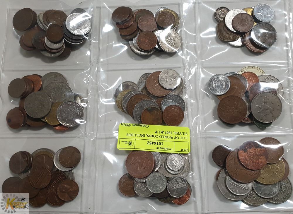 LOT OF WORLD COINS, INCLUDES SILVER, 1867 & UP