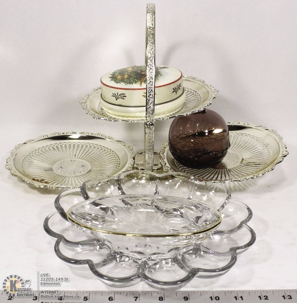 PLATTER, DEVILLED EGG DISH , LAVENDER COLOR GLASS APPLE AND MORE