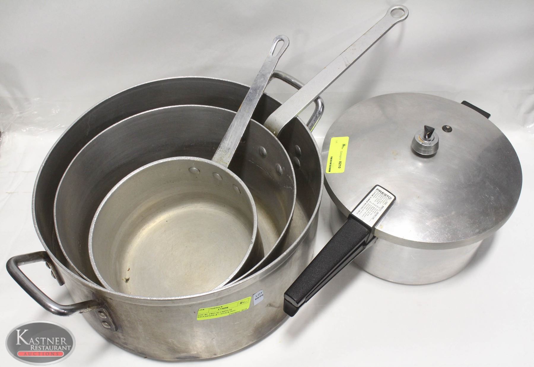 LOT W/ TWO ALUMINUM SAUCEPANS & 1 STOCK POT,
