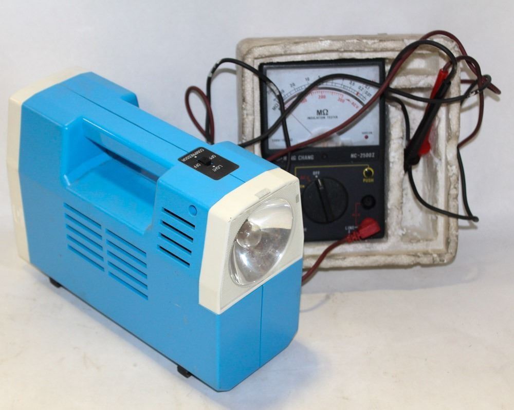 COMPRESSOR WITH TROUBLE LIGHT . TOOLS