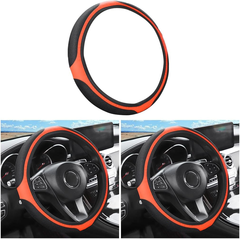LOYAFORBA CAR STEERING WHEEL COVER, UNIVERSAL 14.5-15 INCH, SOFT ANTI-SLIP NEOPRENE PROTECTOR FOR STEERING WHEEL, BREATHABLE ODORLESS AND ELASTIC STRETCH, CAR ACCESSORY FOR SUV, VAN, TRUCK (ORANGE)