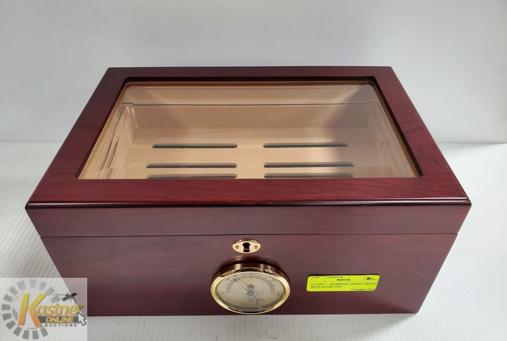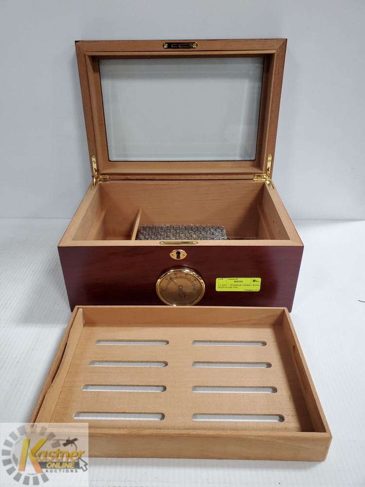 LT 0205-1 HUMIDOR CHERRY WOOD WITH GLASS TOP