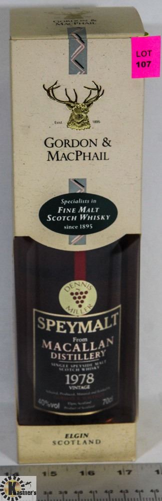 RARE GORDON MACPHAIL SPEYMALT FROM MACALLAN DISTILLERY. DISTILLED IN 1978 AGED FOR AROUND 20 YEARS BEFORE BEING BOTTLED IN 1998. 40% 700ML - *******AVERAGE SELLING PRICE OVER $1000.00 CANADIAN ******* ATTENTION ALCOHOL CANNOT BE