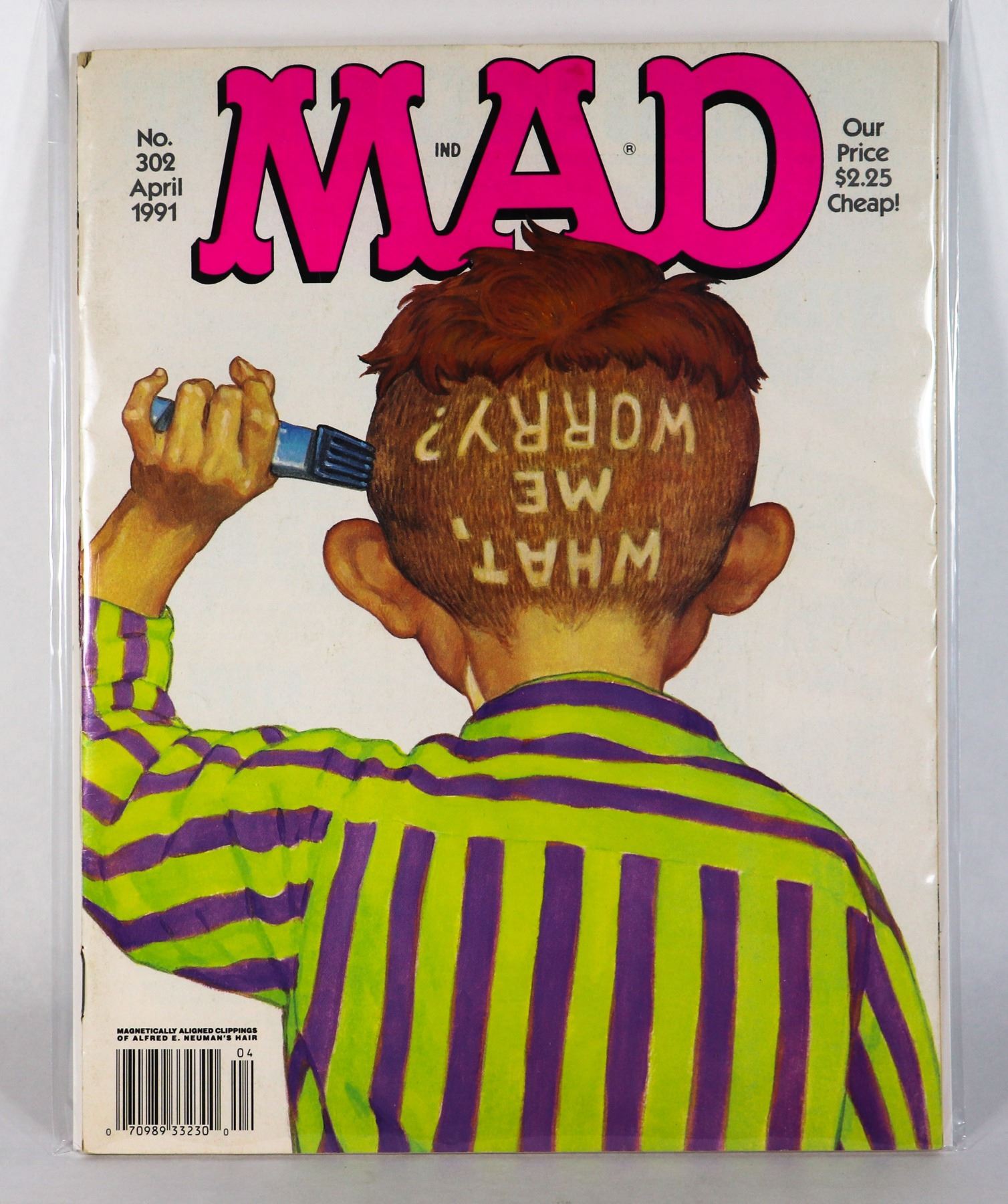 MIRROR IMAGE OF HIS CLASSIC LINE "WHAT ME WORRY?" IN THE HAIR ON THE BACK OF HIS HEAD)