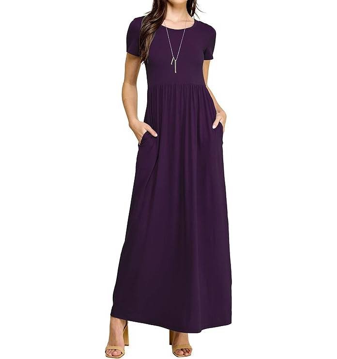MADE BY JOHNNY WOMENS SHORT SLEEVE LOOSE PLAIN CASUAL LONG MAXI DRESSES WITH POCKETS (LARGE)