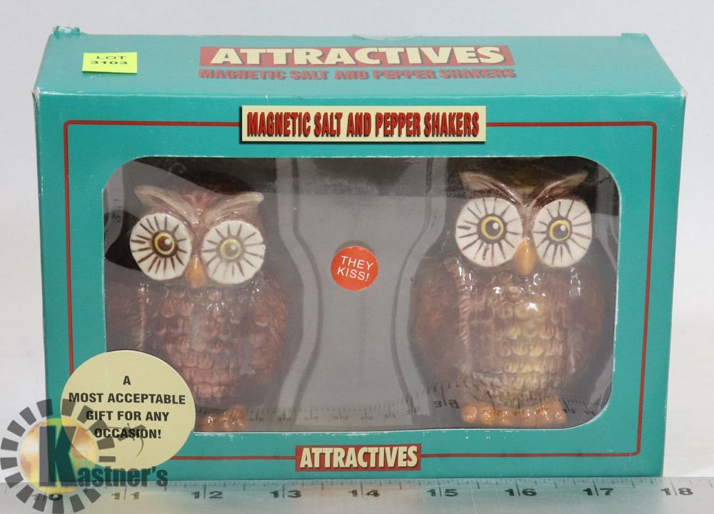 MAGNETIC OWL SALT AND PEPPER SHAKERS