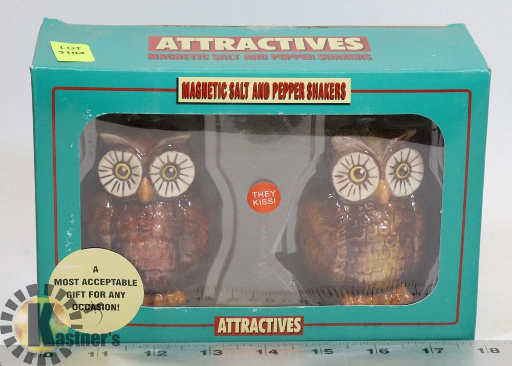 MAGNETIC OWL SALT AND PEPPER SHAKERS