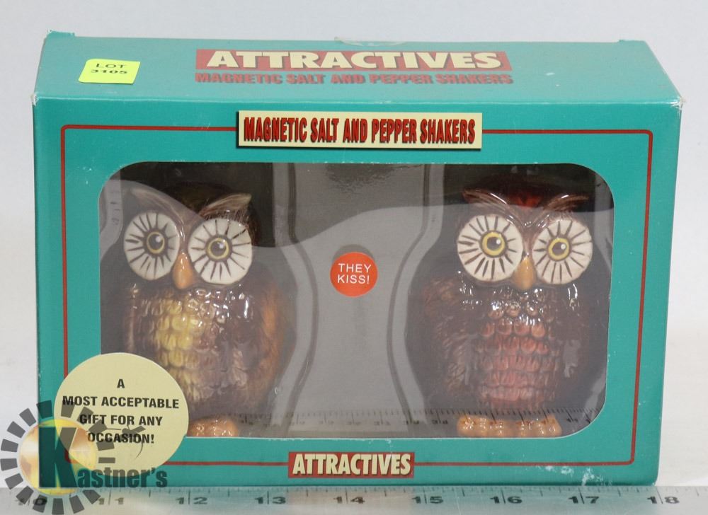 MAGNETIC OWL SALT AND PEPPER SHAKERS