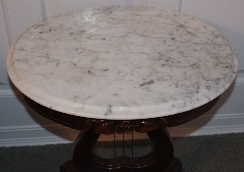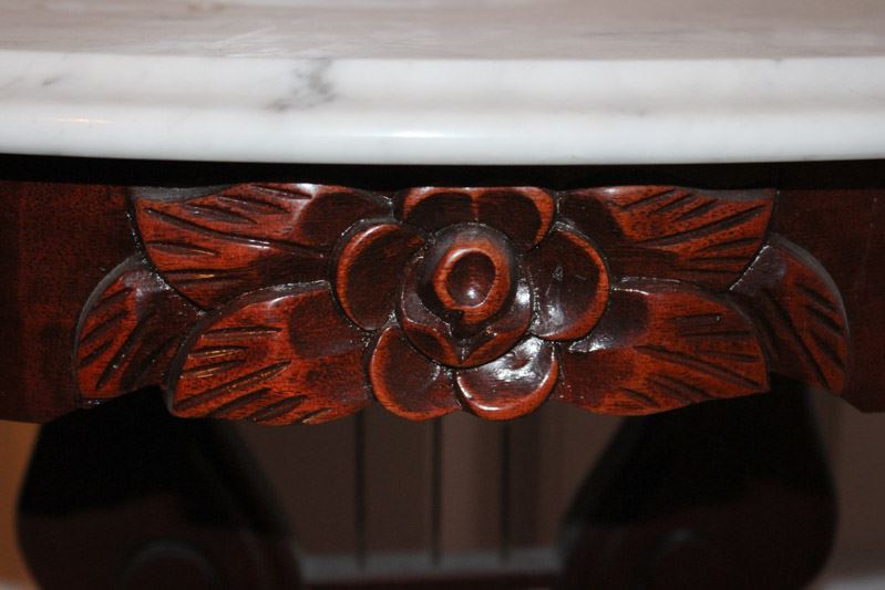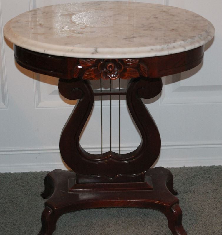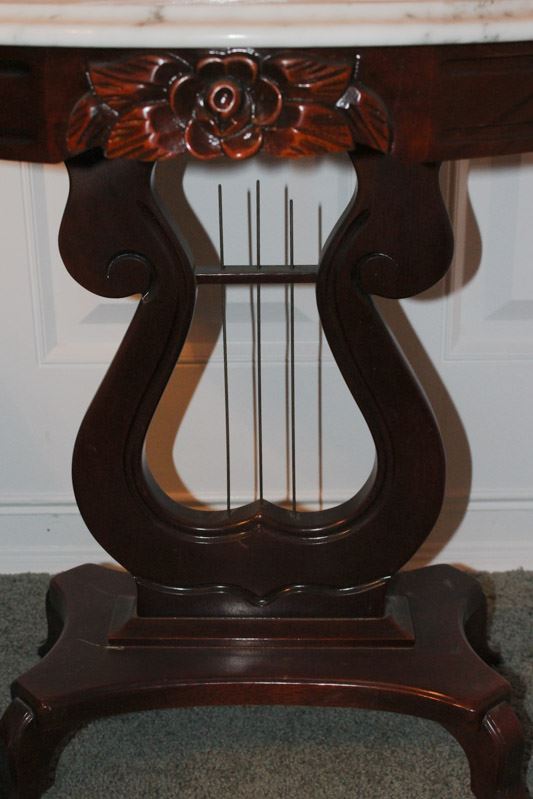 MAHOGANY LYRE BASED TABLE WITH MARBLE TOP
