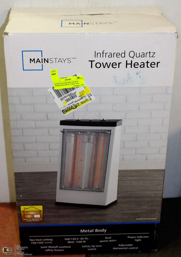 MAINSTAYS INFARED QUARTZ TOWER HEATER W/ TABLE FAN