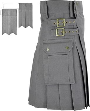 MAJESTICUSA GRAY UTILITY KILTS SCOTTISH MENS WEDDING KILT TRADITIONAL COTTON JEANS - BONUS KILT FLASHES (SIZE : 36) | Category: Clothing/Shoes