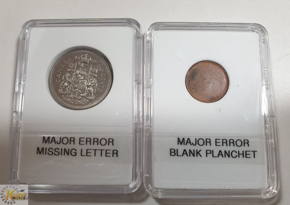 MAJOR MINT ERRORS, BLANK PLANCHET + MISSING LETTER