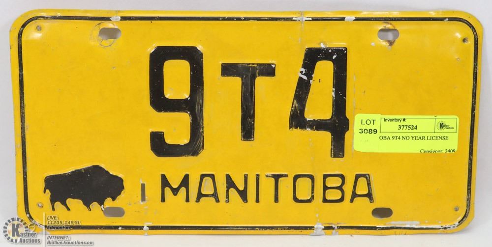 MANITOBA 9T4 NO YEAR LICENSE PLATE