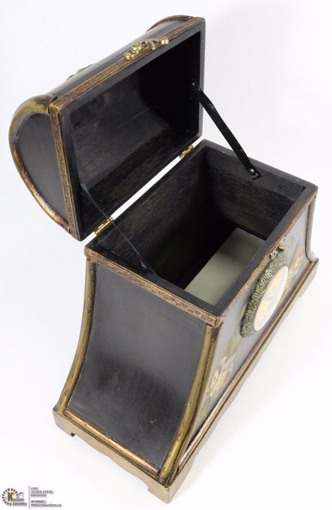 OPENS TO PUT THINGS INSIDE AND TO CHANGE THE CLOCK LOCKS WITH A CLASP