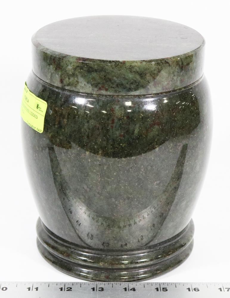 MARBLE DESIGN STONE LIDDED JAR/URN, 7" TALL
