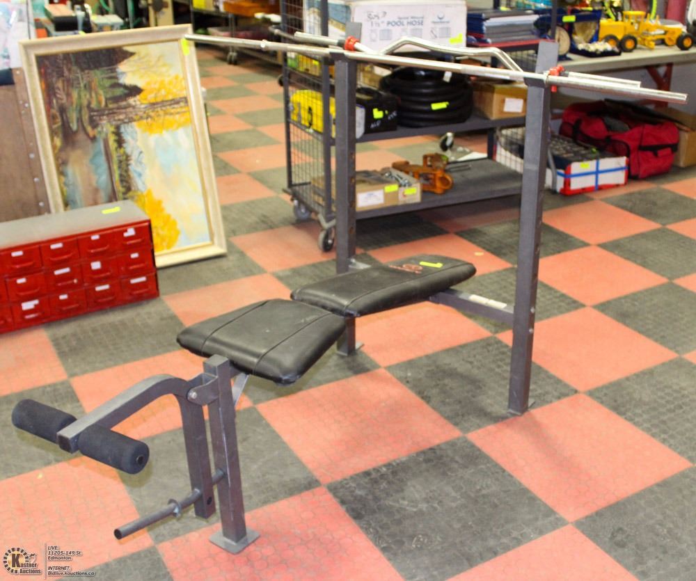 MARCY WEIGHT BENCH W/ BARBELL AND CURL BAR