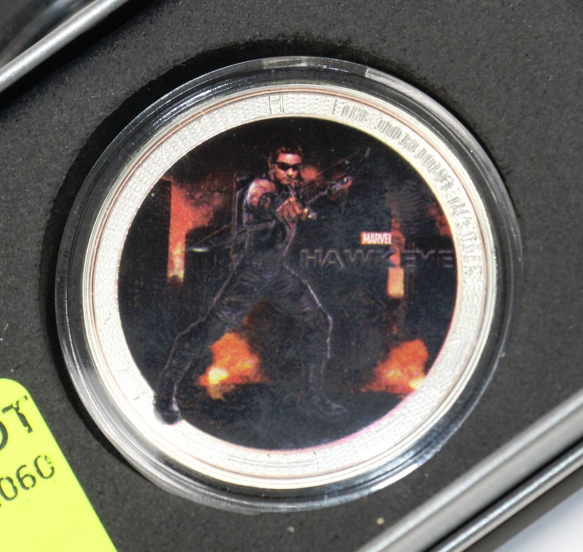 MARVEL "HAWKEYE" SILVER COLLECTIBLE COIN IN CASE