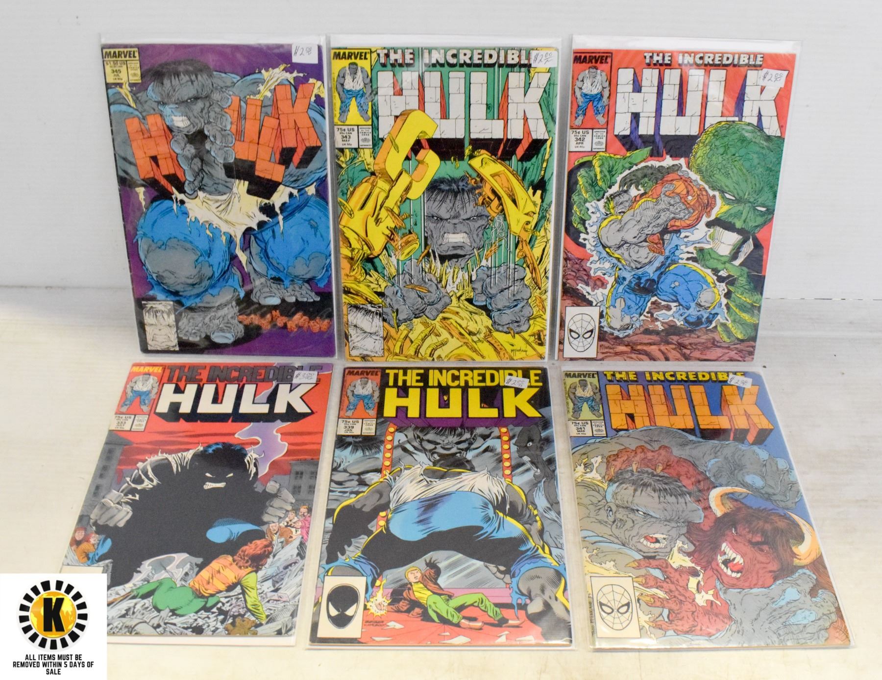 MARVEL INCREDIBLE HULK #333-345 COMIC LOT, 6 BOOKS