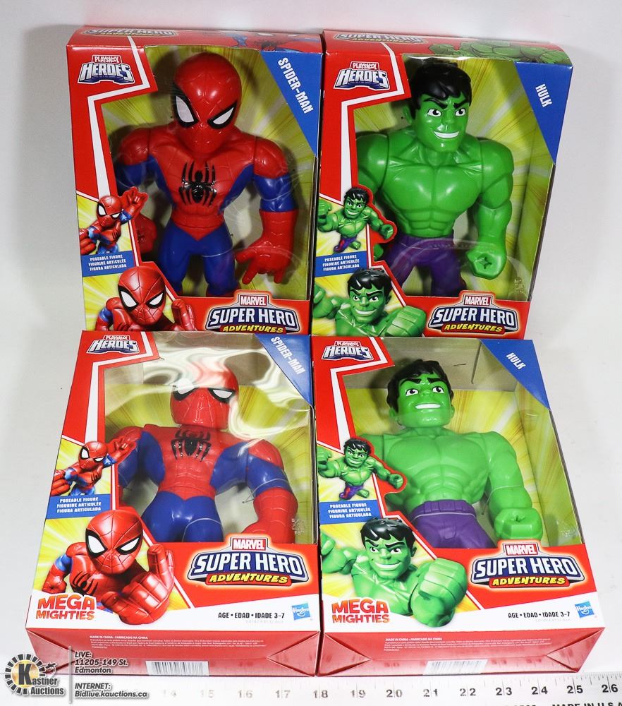 MARVEL SUPERHERO FIGURES 2 SPIDERMAN & 2 HULK